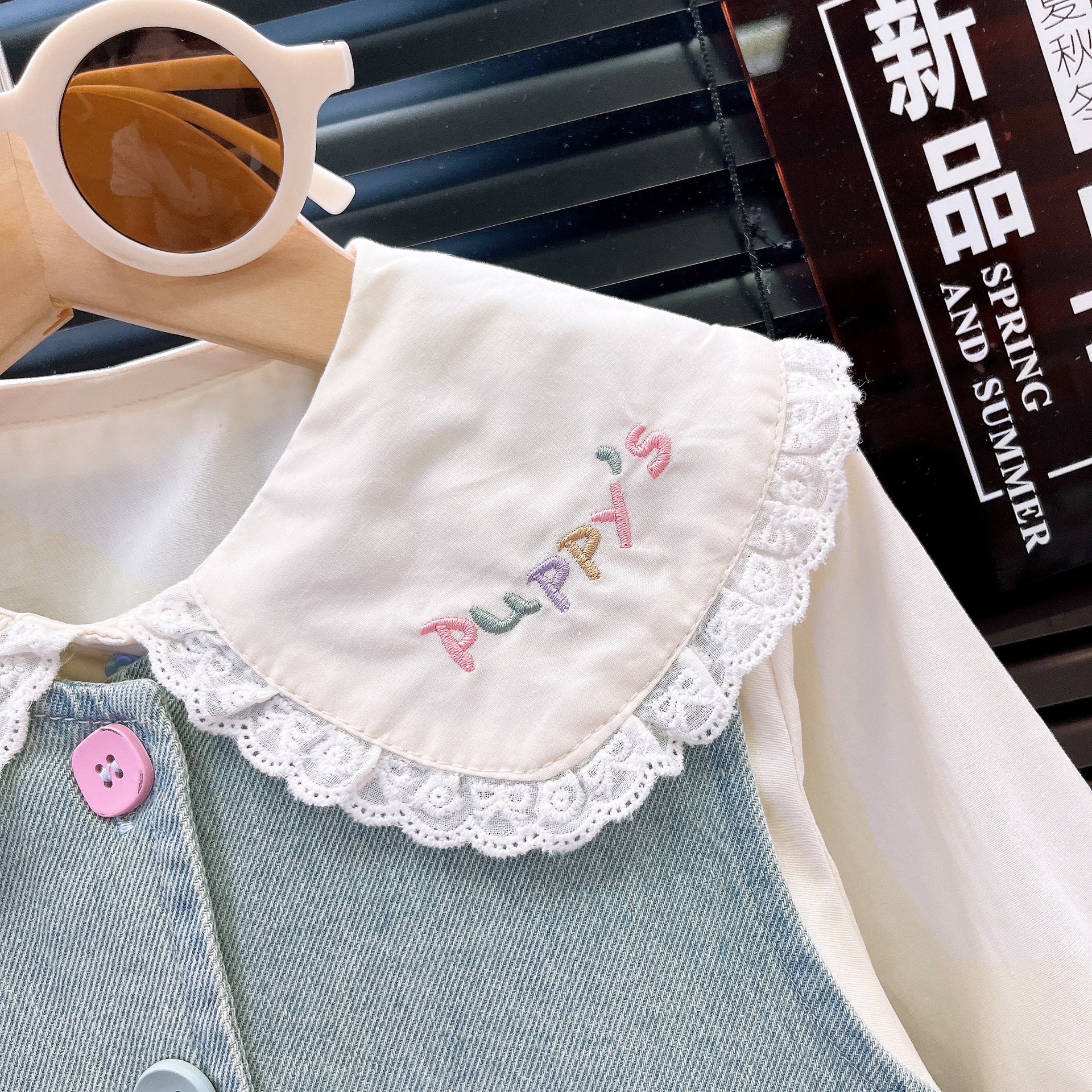 ☁️ Bluză Albă Delicată: Bluza albă are mâneci lungi și comode. Gulerul supradimensionat atrage toate privirile. Este decorat cu broderii dulci și margini din dantelă. Materialul este blând și prietenos cu pielea sensibilă.