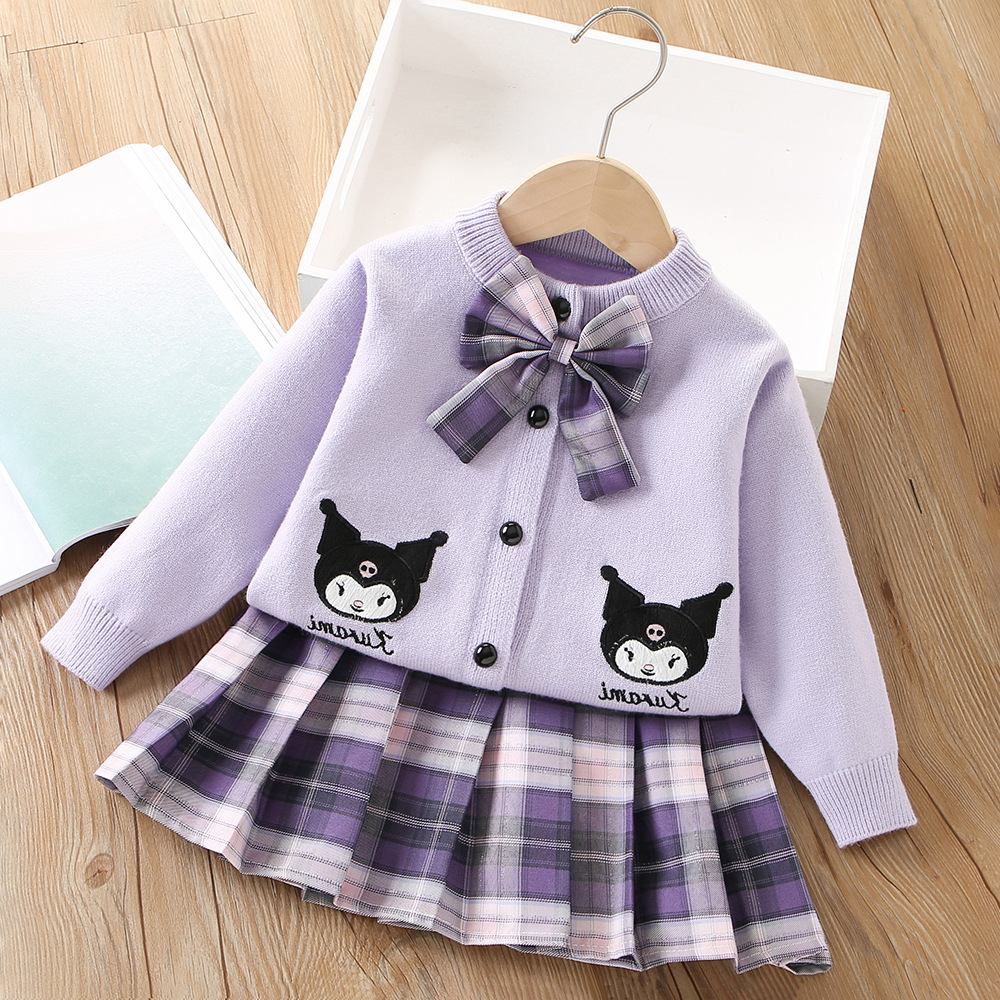 - Set Complet 3 Piese: Include cămașă albă, fustă plisată și cardigan.