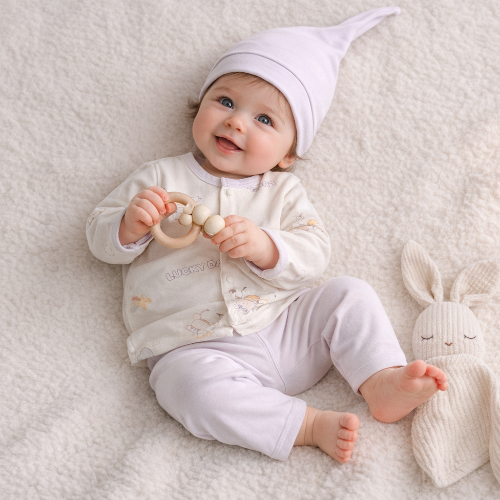 Fiecare piesă este realizată din materiale moi și confortabile, ideale pentru pielea sensibilă a bebelușilor, având un design drăgălaș cu un motiv simpatic. Cu aceste Hăinuțe Cadou Bebe Set Mov vei impresiona orice mamă!